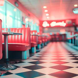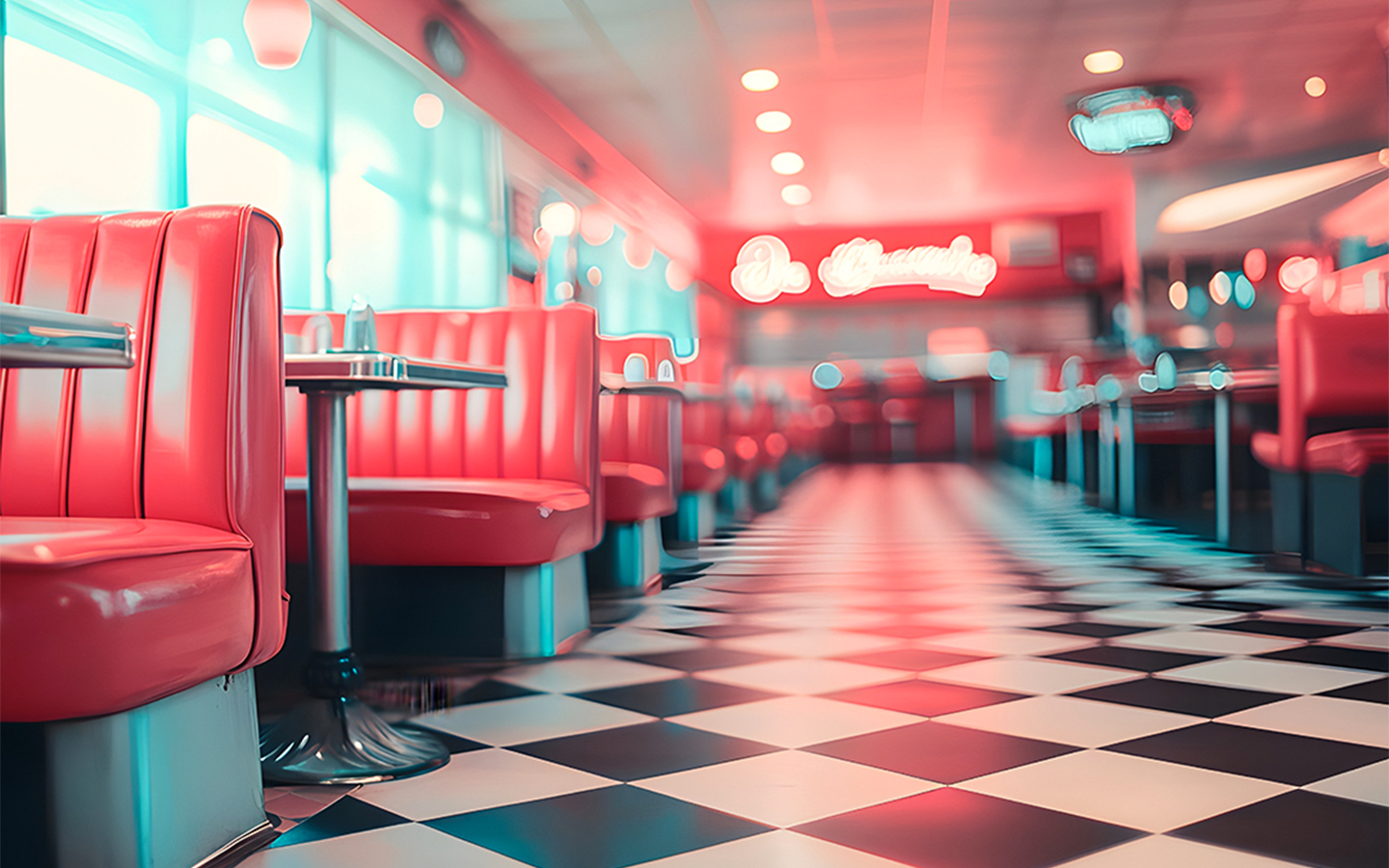 Relive the golden era of rock ‘n’ roll, where jukeboxes played the hits and diners were the heartbeat of the social scene. Ultimo’s Diner at The Kingsman is the perfect corporate event experience for groups 350 – 750px, bringing a fun, 1950s-inspired twist to The Kingsman and transforming the venue into a retro dreamscape with neon lights, checkerboard floors, and all the charm of classic Americana.