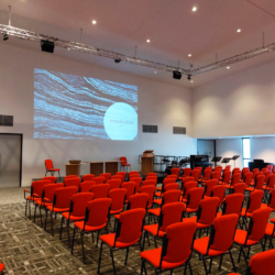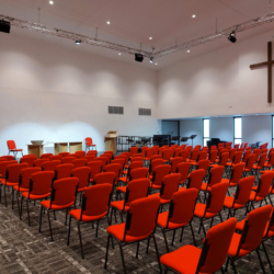 The Auditorium at Manningham Uniting Church is a space that seats 200 people comfortably around tables or more in rows and is able to be set up with the chairs facing any direction.