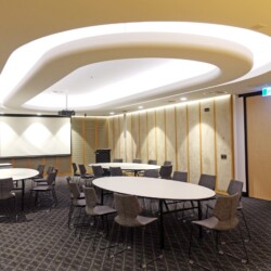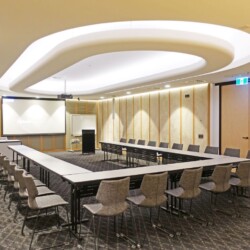 Fully refurbished, light, modern and impressive. Suitable for upper management executives and training sessions or as an additional breakout room for larger conferences. The Boardroom is not only suitable for a boardroom layout, it is also very flexible and can be set up in a u-shape, cabaret around oval tables or a simple theatre style set up. Our built-in screen and projector can be hired for any presentation needs.