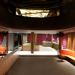 The Cocktail Bar & Lounge is a place of unique light fixtures and sumptuous textures, separated to provide exclusivity yet immersed in the atmosphere of the rooftop and club. The striking cocktail lounge area features plush low level lounge style seating perfect for an intimate event or seated dinner.