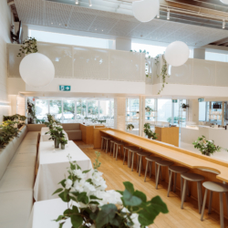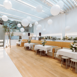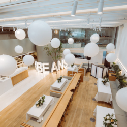 Welcome to Industry Beans Newstead! Imagine your event held in this expansive open plan space over various levels, where the options are limitless for guests up to 120 seated or 200 guests cocktail style. Housed in an architecturally designed beautifully minimalistic warehouse space with expansive function areas boasting high soaring ceilings and filled with natural light, the venue is the ideal choice for special occasions that include weddings, engagement parties, birthday celebrations, bridal showers, business workshops, product launches and so much more, nestled in the heart of Newstead – really anything that deserves an occasion to celebrate. Filled with natural light and a wonderful abundance of greenery throughout, this modern venue offers 4 separate spaces for venue hire or hire the full venue exclusively. The interior offers a blank canvas and minimalist backdrop for a variety of event types with warming oak woods and neutral color tones to complement your next function. If you are looking for a function venue to celebrate a large group gathering or corporate event, then get in touch with the team at Industry Beans Newstead. They will be delighted to assist you to select the right space and menu that suits your budget and needs. Call the dedicated Events Team today to book your event.Gallery