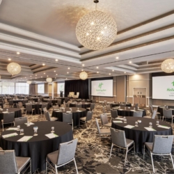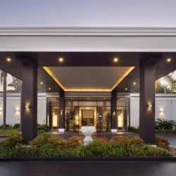 The Event Centre, boasting a seating capacity of over 400 and abundant natural light, is a sought-after venue for corporate conferences, wedding receptions, gala dinners, and exhibitions. The space is adorned with floor-to-ceiling windows and glass doors on its eastern and western sides, complemented by elegant gold chandeliers and a soft, muted interior. It also offers versatility with two folding partition walls that can divide the venue into 3 distinct, smaller spaces: Belle Du Jour, Lonhro, and Octagonal.