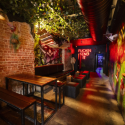 Moody jungle realness meets inner-city chaos. Graffitied walls, treehouse-style nooks, and house/techno pumping all night. Out the back? Couches for catching up, making out – your call.