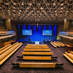 Located on Level 1 and spanning two levels, the Grand Lodge is a unique and impressive tiered theatre seating up to 600 delegates. Boasting stylish architectural timber acoustic panelling and high-speed internet connectivity of up to 1000 mbps up and down it is ideal as your conference plenary.
