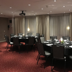 The Parkes Room can hold up to 30 cocktail style. Another of our more intimate spaces, also equipped with a central drop-down screen and ceiling projector, this room has views overlooking the pool, as well as two separate entry doors.