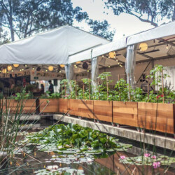 Surrounded by sculptures on the banks of Lake Burley Griffin, the Pavillion is ideal for a wedding ceremony or inspired photo shoot. And the wow factor? Greet your guests as fog from Fujiko Nakaya’s Foggy wake in a desert: An ecosphere floats through the casuarinas.
