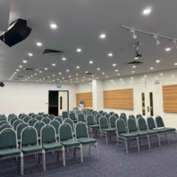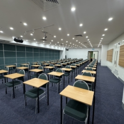 With theatre-style seating, Winners Hall can comfortably fit up to 100 people. This arrangement is perfect for larger audiences who need to focus on a speaker or presentation. The setup ensures that everyone has a good view and can engage with the content without distractions.